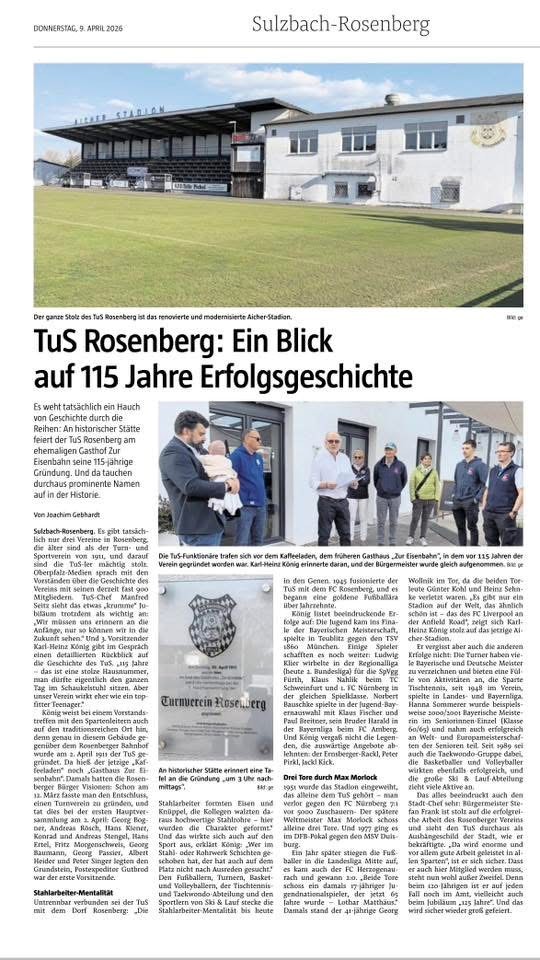 Es weht tatsächlich ein Hauch von Geschichte durch die Reihen. An historische Stätte feiert der Tus Rosenberg am ehemaligen Gasthof zur Eisenbahn seine 115 jährige Gründung... klicke auf das Bild um den Vollständigen Artikel zu lesen.