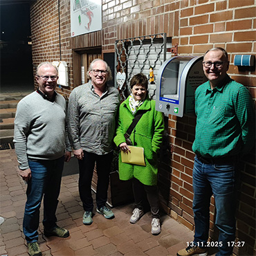 Der TuS hat einen neuen Defibrillator erhalten. Die Anschaffung wurde durch den Förderverein des TuS ermöglicht und zusätzlich von Armin Rüger vom Lions Club unterstützt. Das Gerät ist öffentlich zugänglich und soll im Ernstfall allen Bürgerinnen und Bürgern schnell Hilfe bieten.